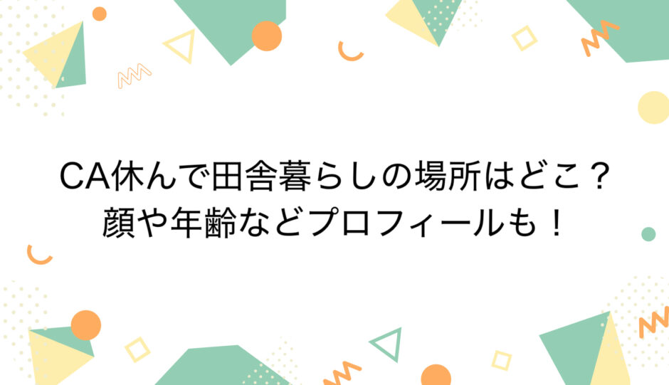 なんて疑問をお持ちのアナタのために、CA休んで田舎暮らしの場所やMizukiさんの顔やプロフィールを調査・まとめました!