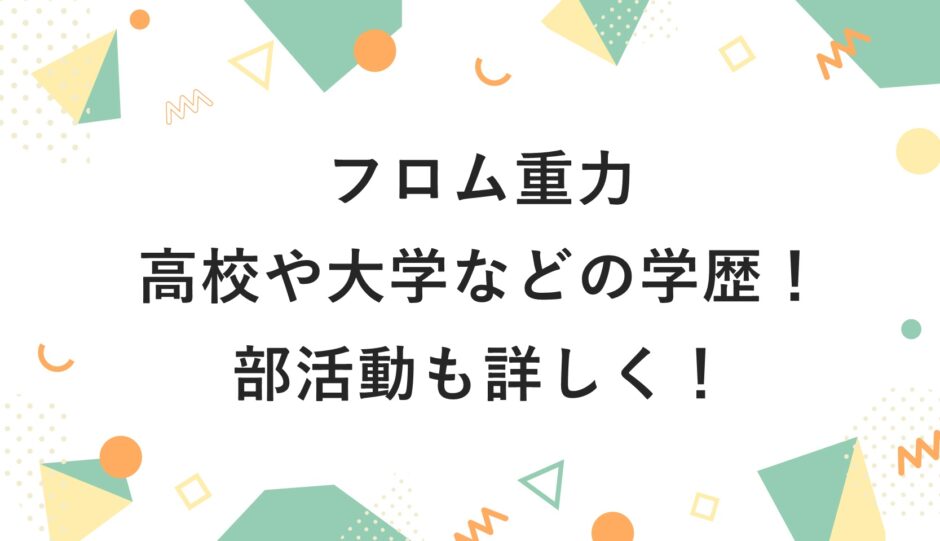 なんて興味をお持ちのアナタのために、フロム重力の高校や大学などの学歴、部活動についても詳しく調べました!
