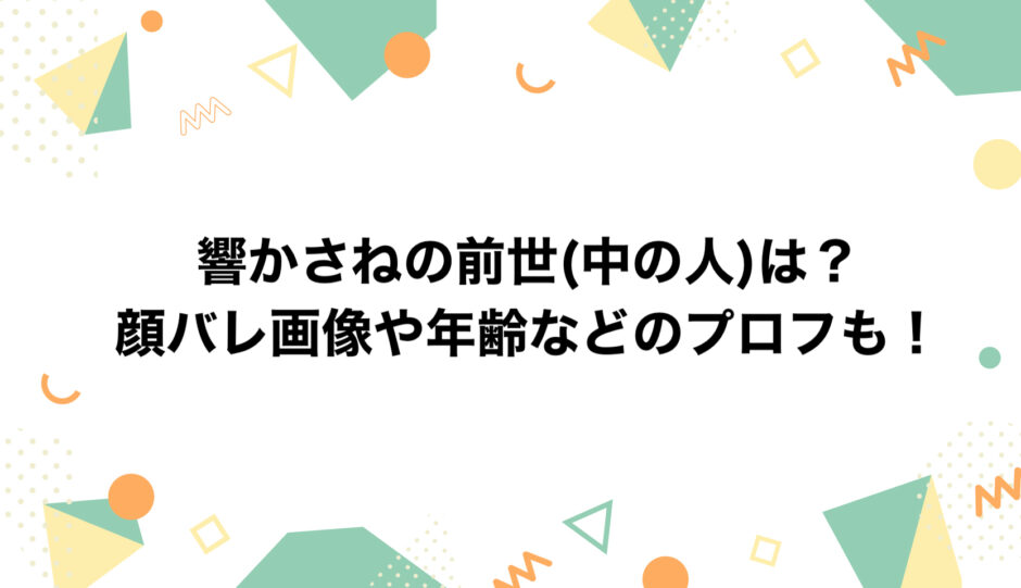 なんて疑問をお持ちのアナタのために、響かさね さんの顔や年齢、前世などのプロフィールについても調査・まとめました!