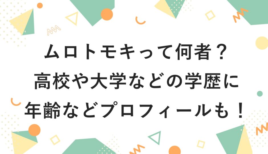 なんて気になるアナタのために、ムロトモキさんがいったい何者なのか、学歴や年齢などプロフィールも詳しく調べてまとめました!