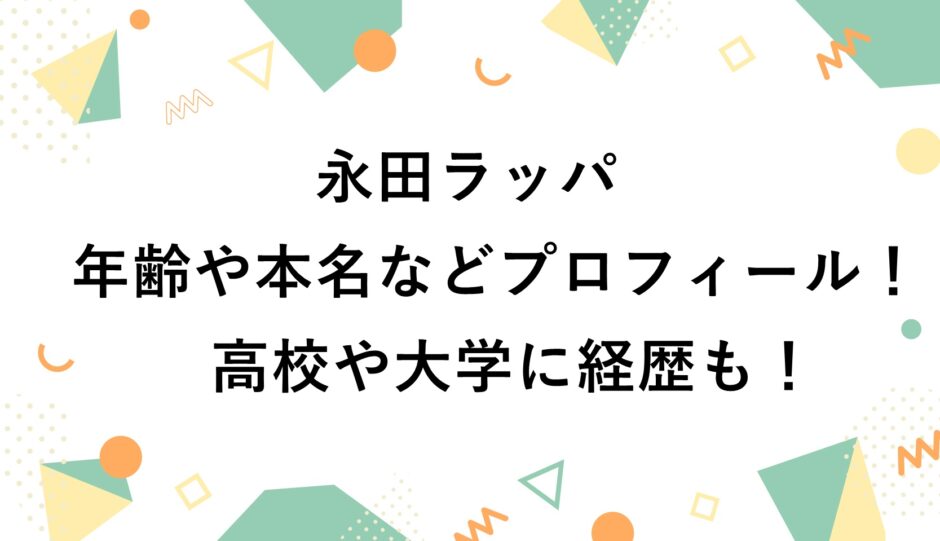なんて疑問をお持ちのアナタのために、永田ラッパさんのプロフィールや学歴、経歴などを調査・まとめました!