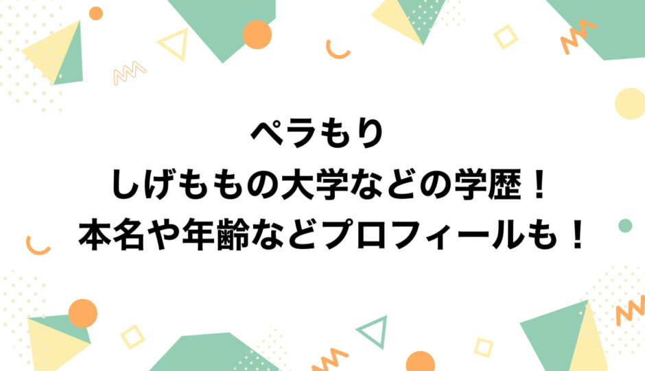 なんて疑問をお持ちのアナタのために、しげももさんの学歴やプロフィールを調査・まとめました!