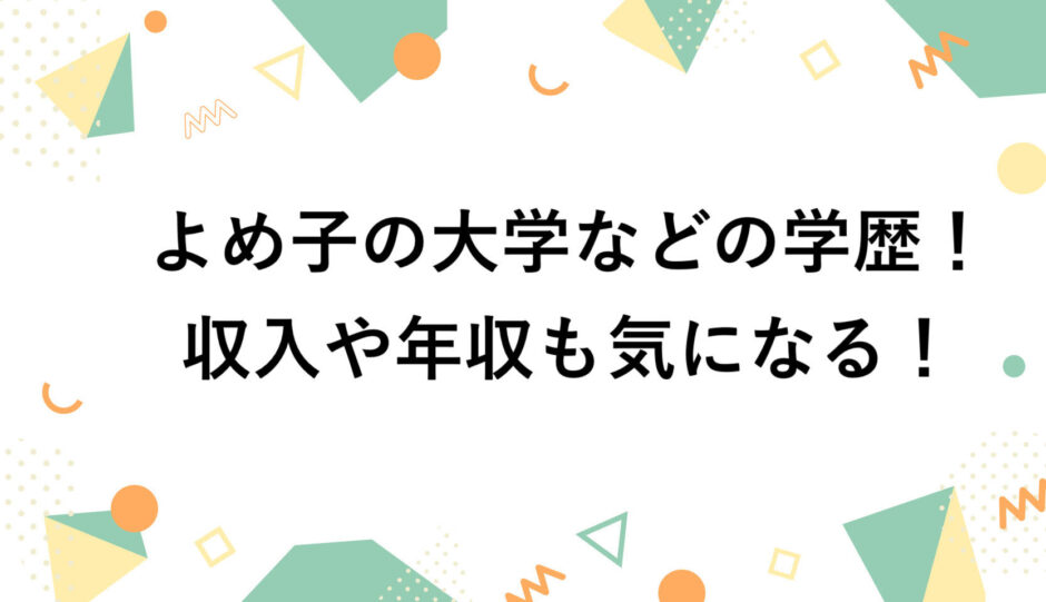と興味を抱いたアナタのために、よめ子さんの大学などの学歴や、収入、年収について調査・まとめました。